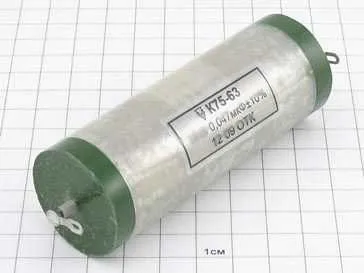 К75-63 16кВ 0,47мкФ конденсатор комбинированный. Конденсатор относится к разделу пассивных электронных компонентов. По конструкции состоит из двух электродов в форме пластин (называемых обкладками), разделённых диэлектриком, толщина которого мала по сравнению с размерами обкладок.