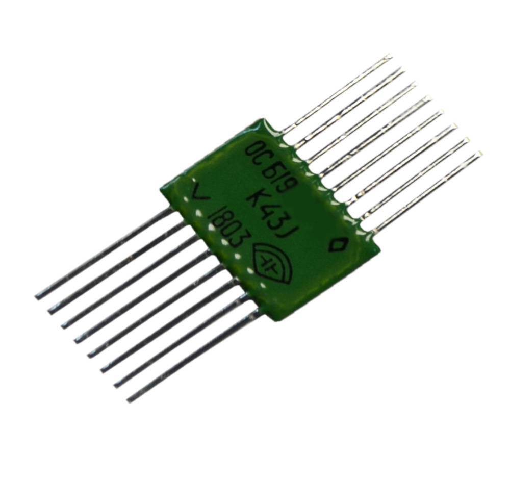 Б19-1-1 360 блок резисторов монолитный с планарными выводами. Предназначен для работы в электрических цепях постоянного, переменного токов и в импульсных режимах эксплуатации во всех климатических районах (исполнение В).
