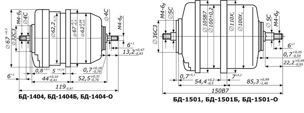 | БД-1404Б | 50±1,5 | 0,46 | 110±5,5 | 15 | 1,2 | КЭ0.005.554ТУ |
