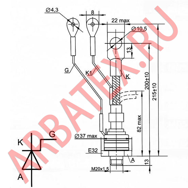 Масса тиристора не более 6 г.